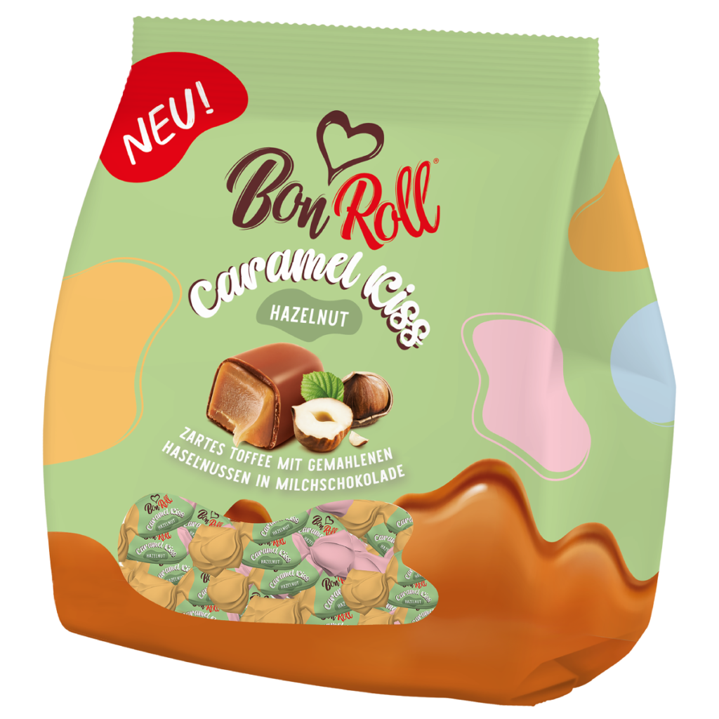 With Bon Roll Caramel Kiss Chocolate, experience a harmonious fusion of delicate caramel toffee and fine cocoa, covered in delicate milk chocolate. Every Caramel Kiss is a little masterpiece that takes chocolate lovers into sweet moments of happiness. A pleasure for all senses!